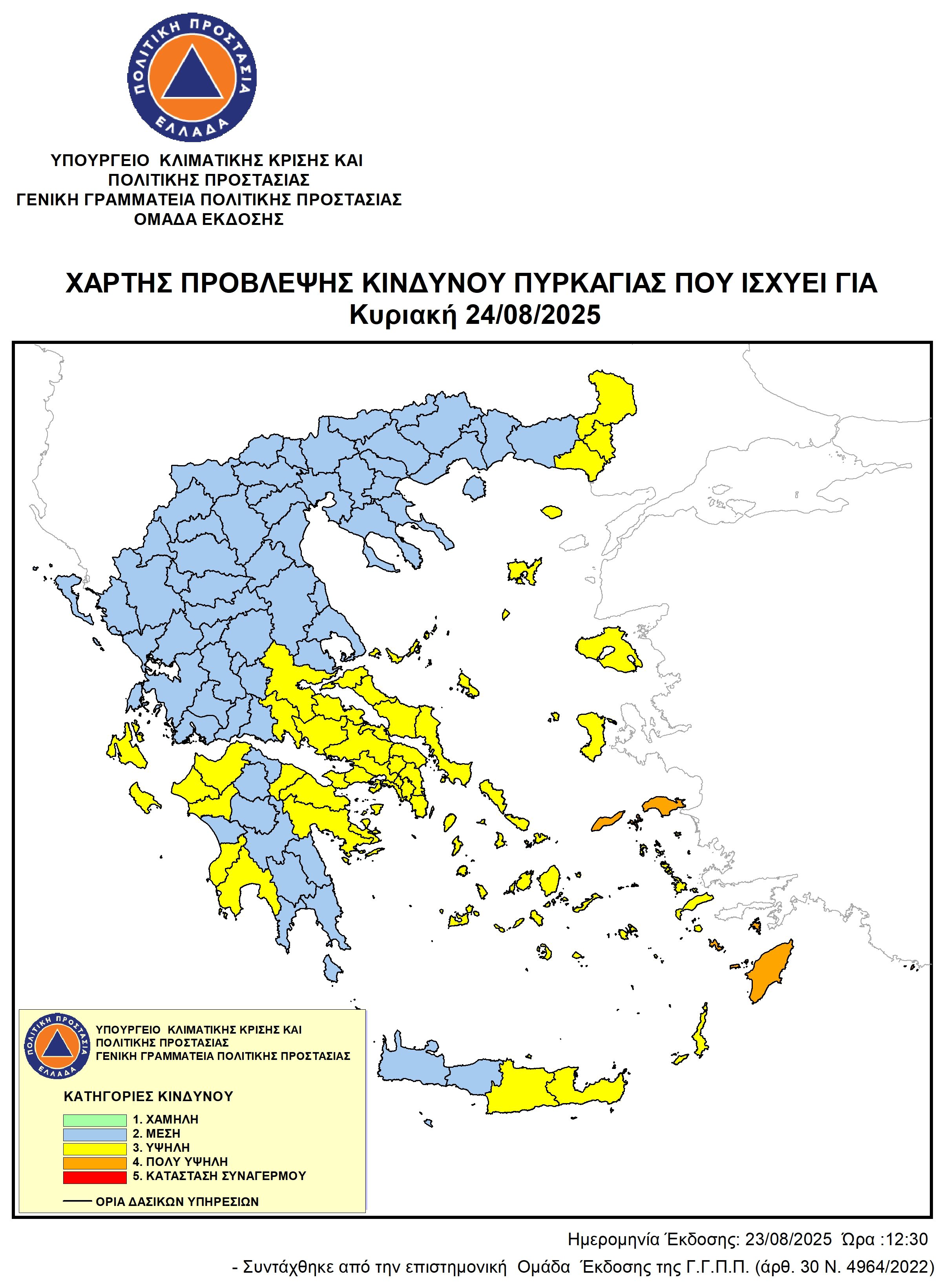 Υποβλήθηκε Κυ, 24/08/2025 - 11:15 Χάρτης Πρόβλεψης Κινδύνου Πυρκαγιάς για Κυριακή 24-08-2025