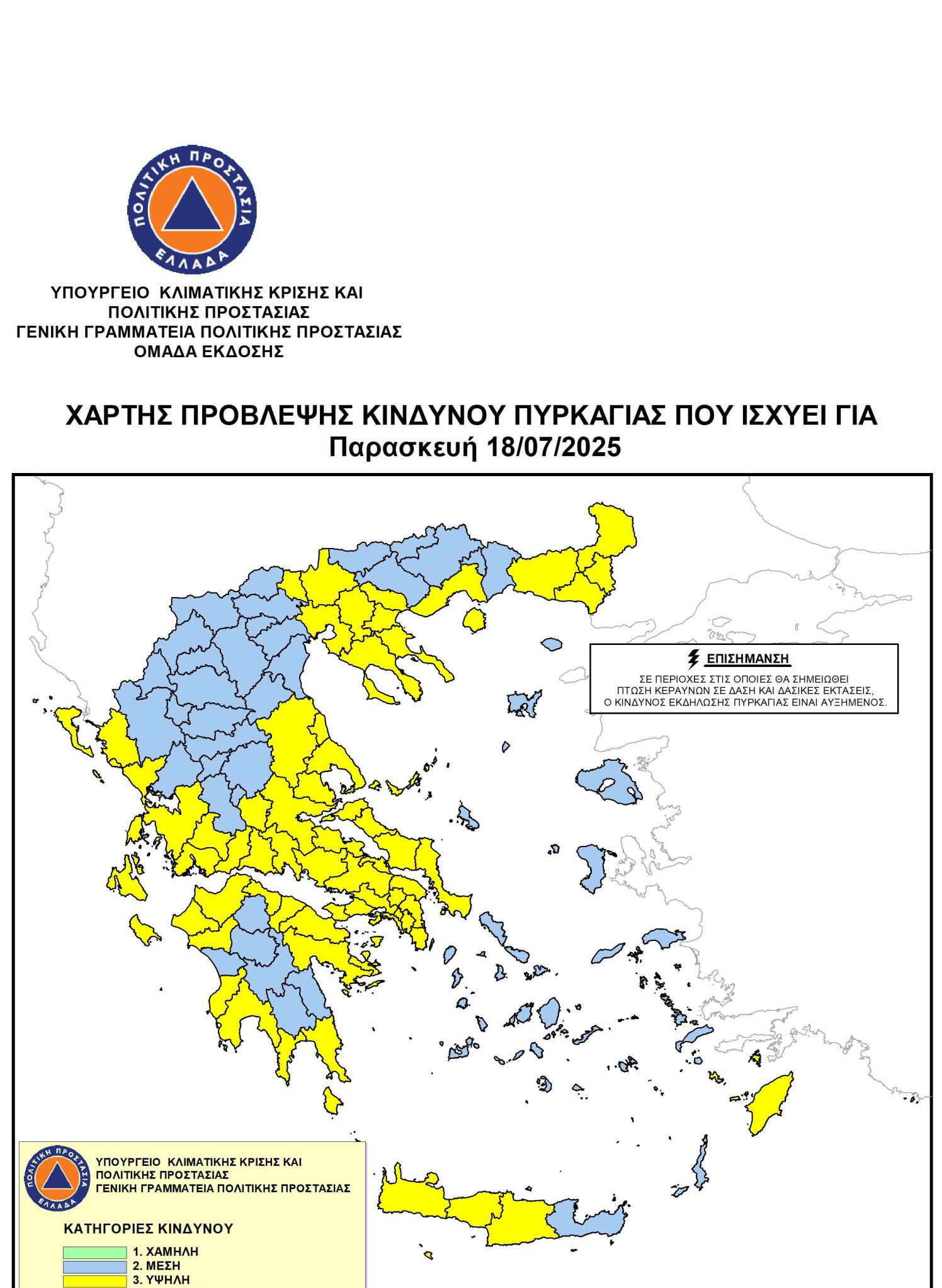 Υποβλήθηκε Πε, 17/07/2025 - 01:31 Χάρτης Πρόβλεψης Κινδύνου Πυρκαγιάς για Παρασκευή 18-07-2025
