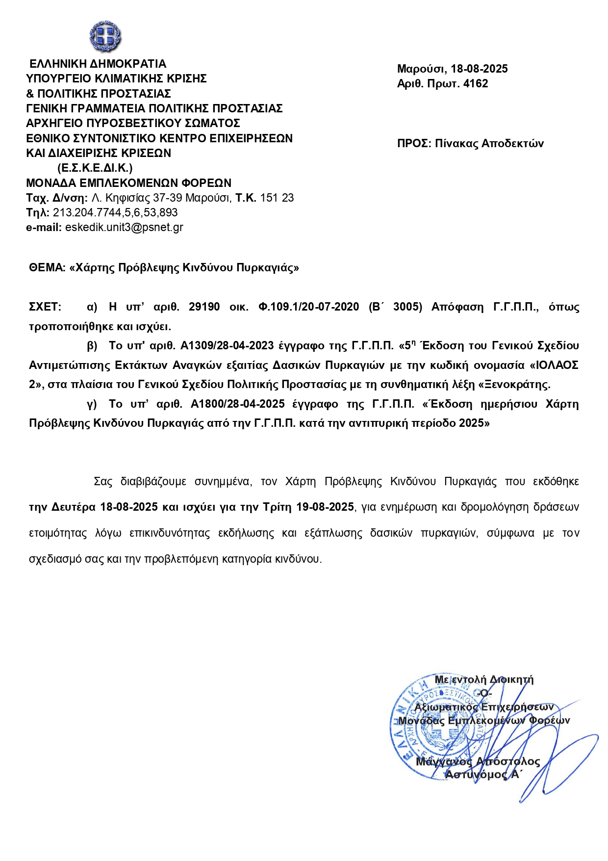 Αρχεία 4162-ΧΑΡΤΗΣ-ΠΡΟΒΛΕΨΗΣ-ΚΙΝΔΥΝΟΥ-ΠΥΡΚΑΓΙΑΣ-ΚΑΤΗΓΟΡΙΑΣ-3-ΓΙΑ-ΤΗN-ΤΡΙΤΗ-19-08-2025_page-0001.jpg 4162-ΧΑΡΤΗΣ-ΠΡΟΒΛΕΨΗΣ-ΚΙΝΔΥΝΟΥ-ΠΥΡΚΑΓΙΑΣ-ΚΑΤΗΓΟΡΙΑΣ-3-ΓΙΑ-ΤΗN-ΤΡΙΤΗ-19-08-2025_page-0002.jpg 4162-ΧΑΡΤΗΣ-ΠΡΟΒΛΕΨΗΣ-ΚΙΝΔΥΝΟΥ-ΠΥΡΚΑΓΙΑΣ-ΚΑΤΗΓΟΡΙΑΣ-3-ΓΙΑ-ΤΗN-ΤΡΙΤΗ-19-08-2025_page-0003.jpg