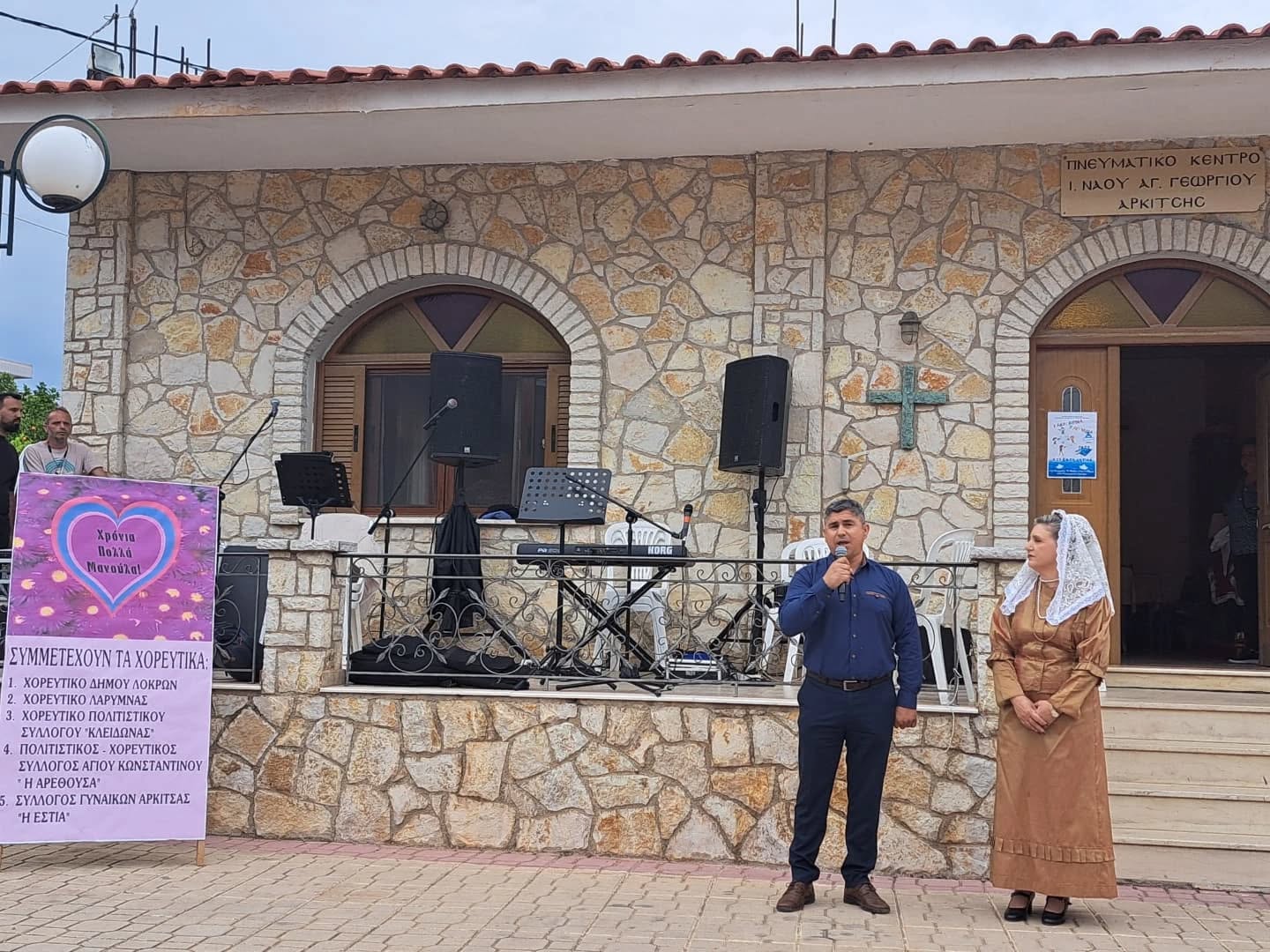 Με επιτυχία πραγματοποιήθηκε το Χορευτικό Φεστιβάλ για τη Γιορτή της Μητέρας σε συνδιοργάνωση του Συλλόγου Γυναικών Αρκίτσας «Η Εστία», του Δήμου Λοκρών και της Κοινότητας Αρκίτσας την Κυριακή 11 Μαΐου 2025 στις 18:30 στον προαύλιο χώρο του Ιερού Ναού Αγίου Γεωργίου Αρκίτσας Δήμο Λοκρών. Στους χαιρετισμούς που απηύθυναν ο Δήμαρχος Λοκρών κ. Αθανάσιος Ζεκεντές, ο Πρόεδρος της Κοινότητας Αρκίτσας κ. Ανάργυρος Μοδιάτης και ο Αιδεσιμότατος πάτερ Λάμπρος Λάμπρου τόνισαν τη σπουδαιότητα της μητρότητας στη διάρκεια της ζωής και τη μοναδικότητα της λέξης μητέρα.