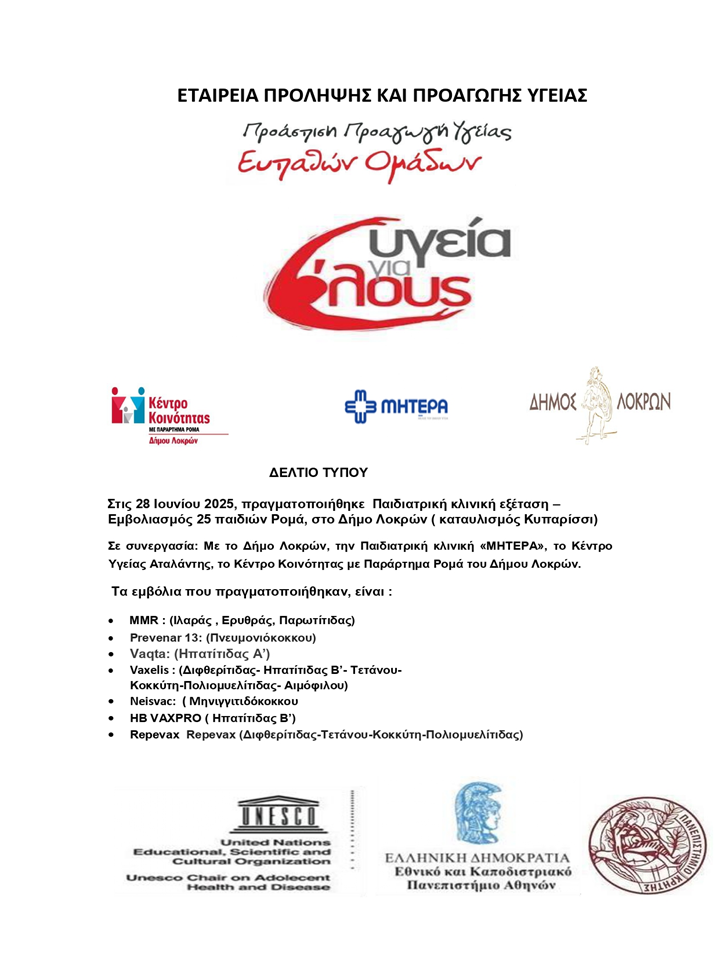 Εμβολιασμός παιδιών Ρομά στους καταυλισμούς της Κοινότητας Κυπαρισσίου του Δήμου Λοκρών
