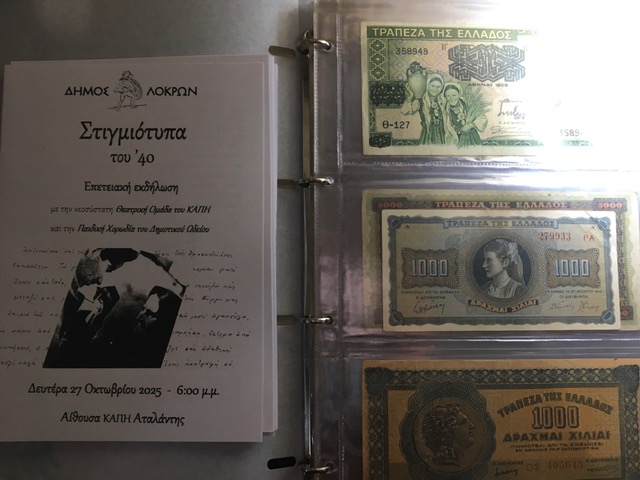 Στο πλαίσιο του εορτασμού της Εθνικής Επετείου της 28η Οκτωβρίου, ο Δήμος Λοκρών μέσω της Διεύθυνσης Κοινωνικής Προστασίας και Αλληλεγγύης και του ΚΑΠΗ Αταλάντης διοργάνωσε τη Δευτέρα 27 Οκτωβρίου 2025 εκδήλωση με τίτλο «Στιγμιότυπα του 40».