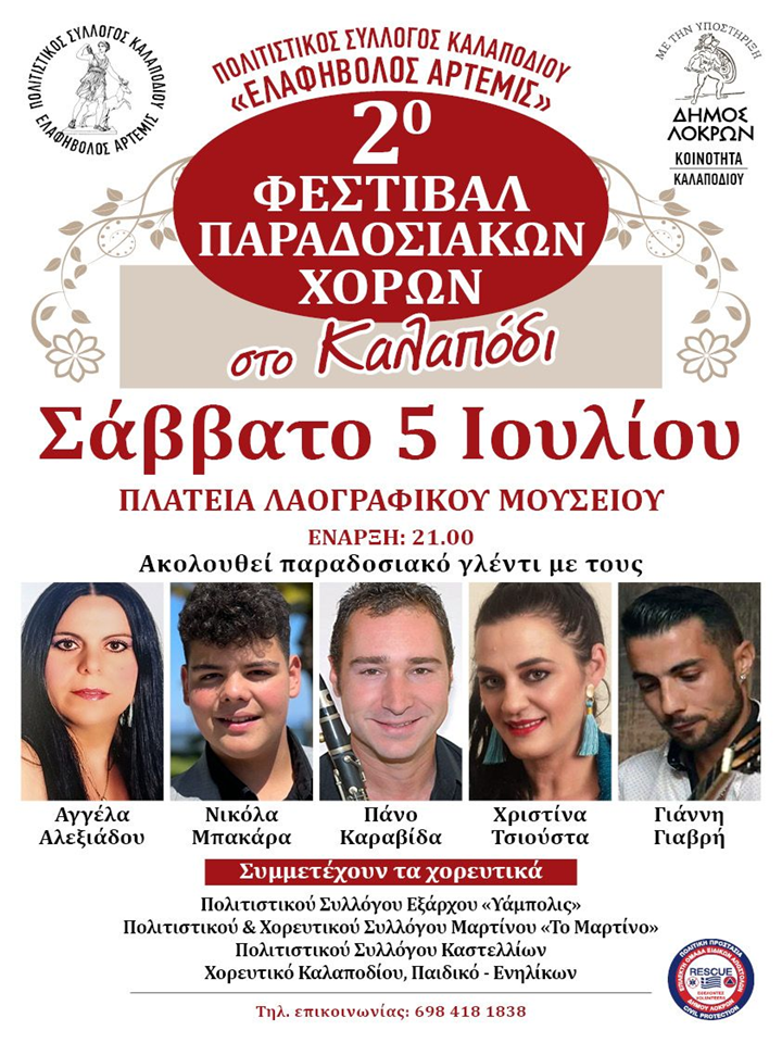 2ο Φεστιβάλ Παραδοσιακών Χορών στο Καλαπόδι Δήμου Λοκρών το Σάββατο 5 Ιουλίου 2025 στις 21:00 στην Πλατεία Λαογραφικού Μουσείου