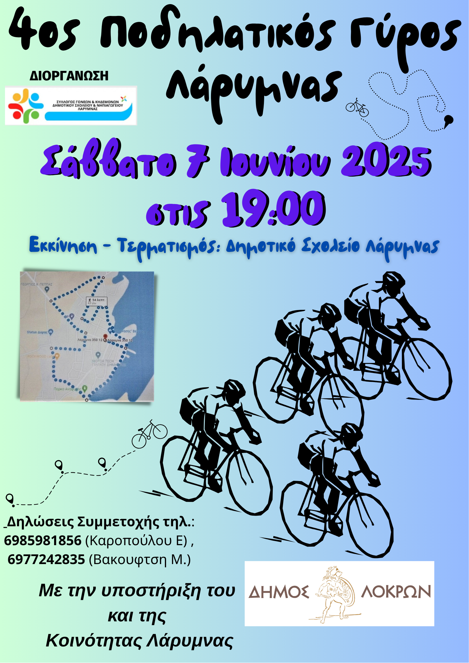 Υποβλήθηκε Τρ, 03/06/2025 - 09:07 4ος Ποδηλατικός Γύρος Λάρυμνας Δήμου Λοκρών το Σάββατο 7 Ιουνίου 2025 στις 19:00