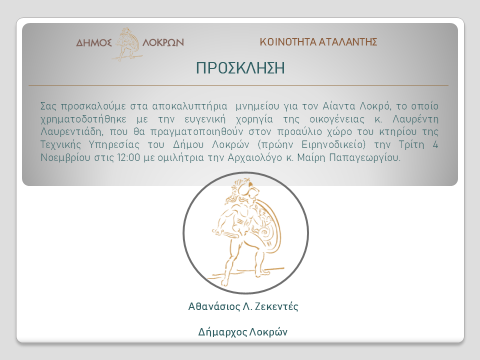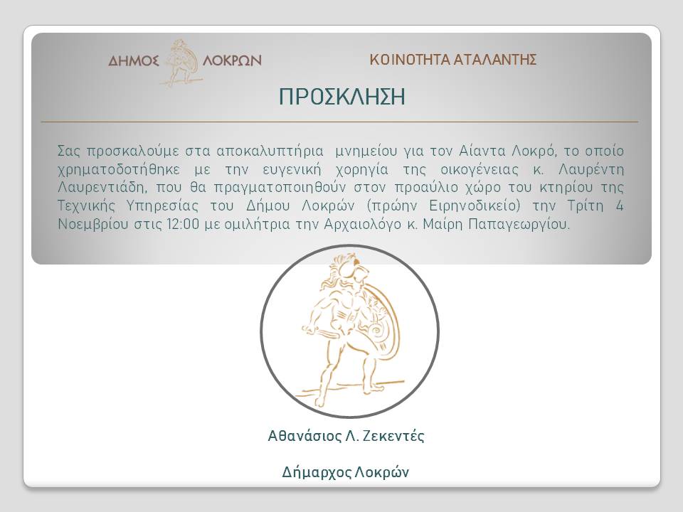 Αποκαλυπτήρια μνημείου Αίαντα Λοκρού την Τρίτη 4 Νοεμβρίου 2025 στην Αταλάντη Δήμου Λοκρών