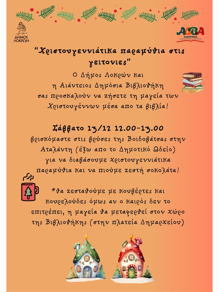 Υποβλήθηκε Τρ, 09/12/2025 - 09:45 Χριστουγεννιάτικα Παραμύθια στις γειτονιές της Αταλάντης