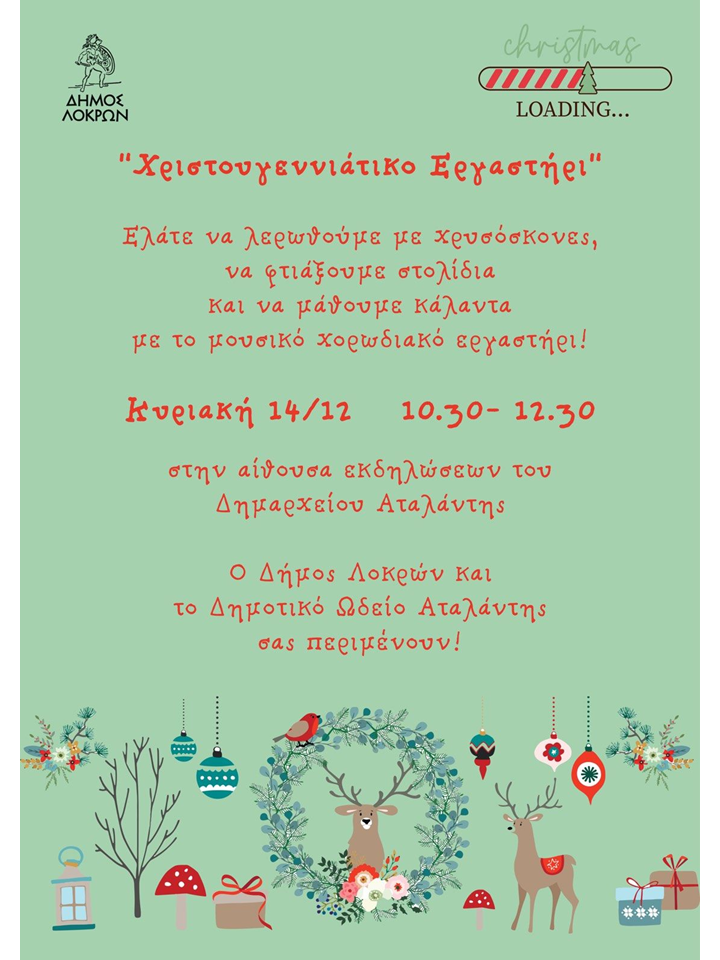 Χριστουγεννιάτικο εργαστήρι στην Αίθουσα Εκδηλώσεων του Δημαρχείου Αταλάντης Δήμου Λοκρών στις 14 Δεκεμβρίου 2025