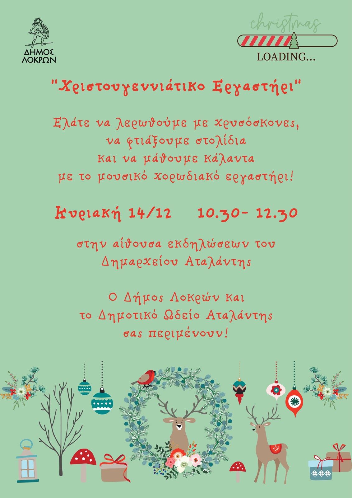Χριστουγεννιάτικο εργαστήρι στην Αίθουσα Εκδηλώσεων του Δημαρχείου Αταλάντης Δήμου Λοκρών στις 14 Δεκεμβρίου 2025