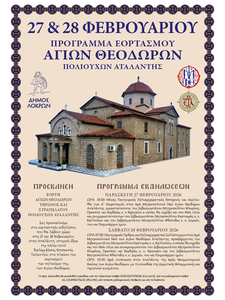 Εορτασμός των Πολιούχων της Αταλάντης Τήρωνος και Στρατηλάτου στις 27 και 28 Φεβρουαρίου 2026