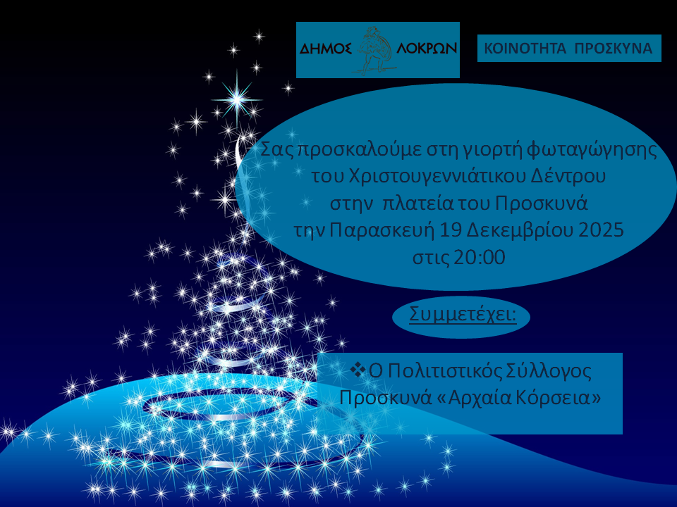 Φωταγώγηση Χριστουγεννιάτικου Δέντρου στο Προσκυνά Δήμου Λοκρών την Παρασκευή 19 Δεκεμβρίου 2025 στις 20:00