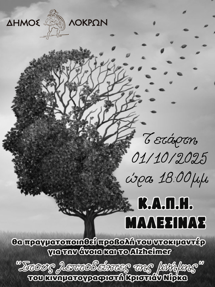Προβολή ντοκιμαντέρ για την άνοια και το Alzheimer στο ΚΑΠΗ Μαλεσίνας την Τετάρτη 1 Οκτωβρίου 2025 στις 18:00
