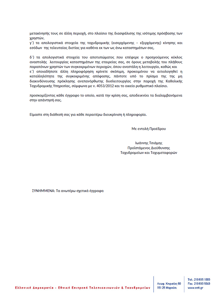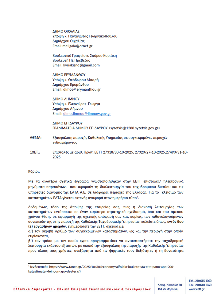 Εξασφάλιση παροχής Καθολικής Υπηρεσίας σε συγκεκριμένες περιοχές ενδιαφέροντος
