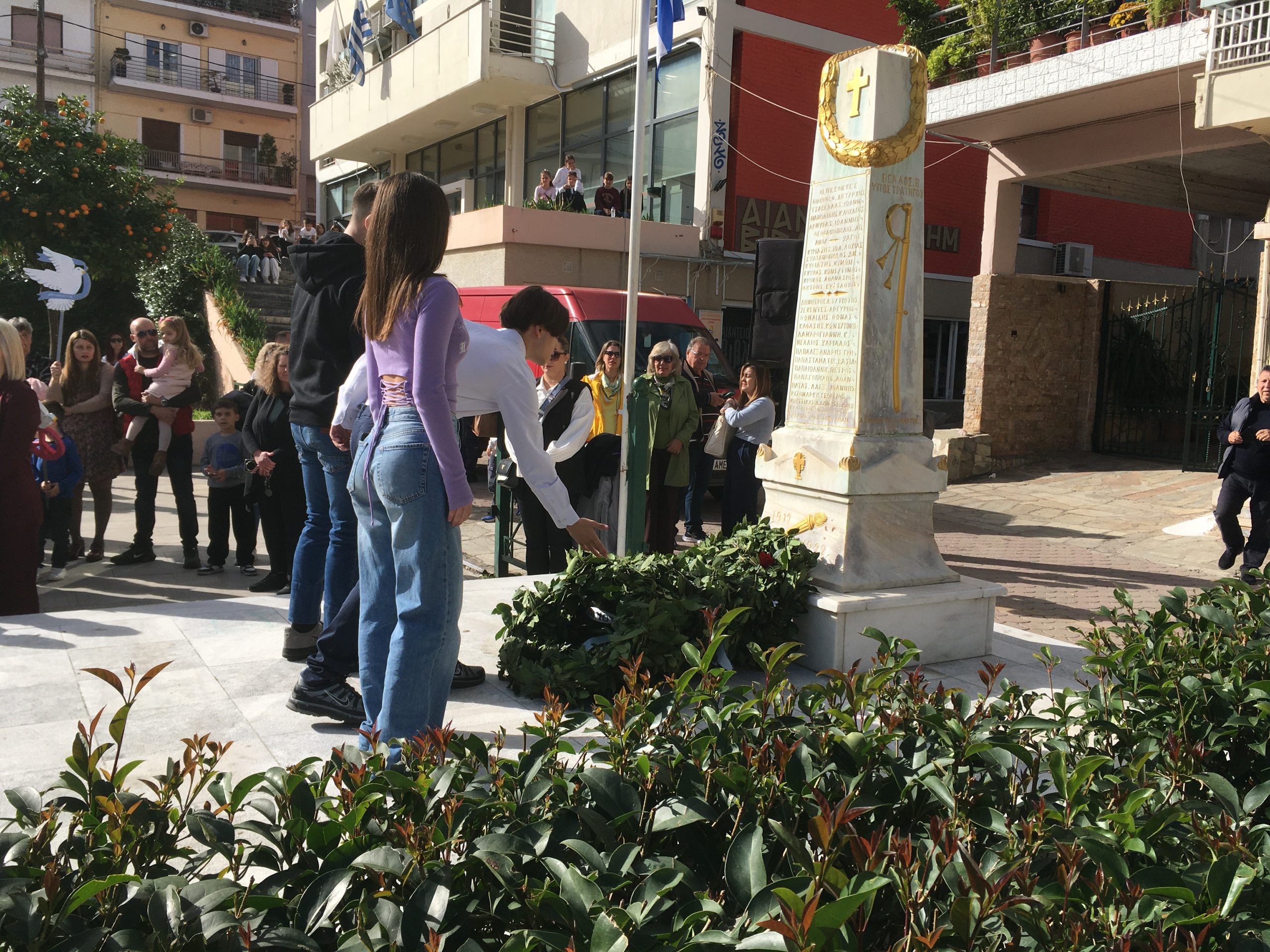Τιμούμε σήμερα όσους αγωνίστηκαν για αξίες και ιδανικά, μαθαίνουμε από τον αγώνα τους πως πρέπει να τολμούμε και συνεχίζουμε να είμαστε θεματοφύλακες της δημοκρατίας, του σεβασμού στους θεσμούς, της κοινωνικής αλληλεγγύης και της παιδείας που είναι η βάση για εξέλιξη με όρους προόδου της κοινωνίας μας».