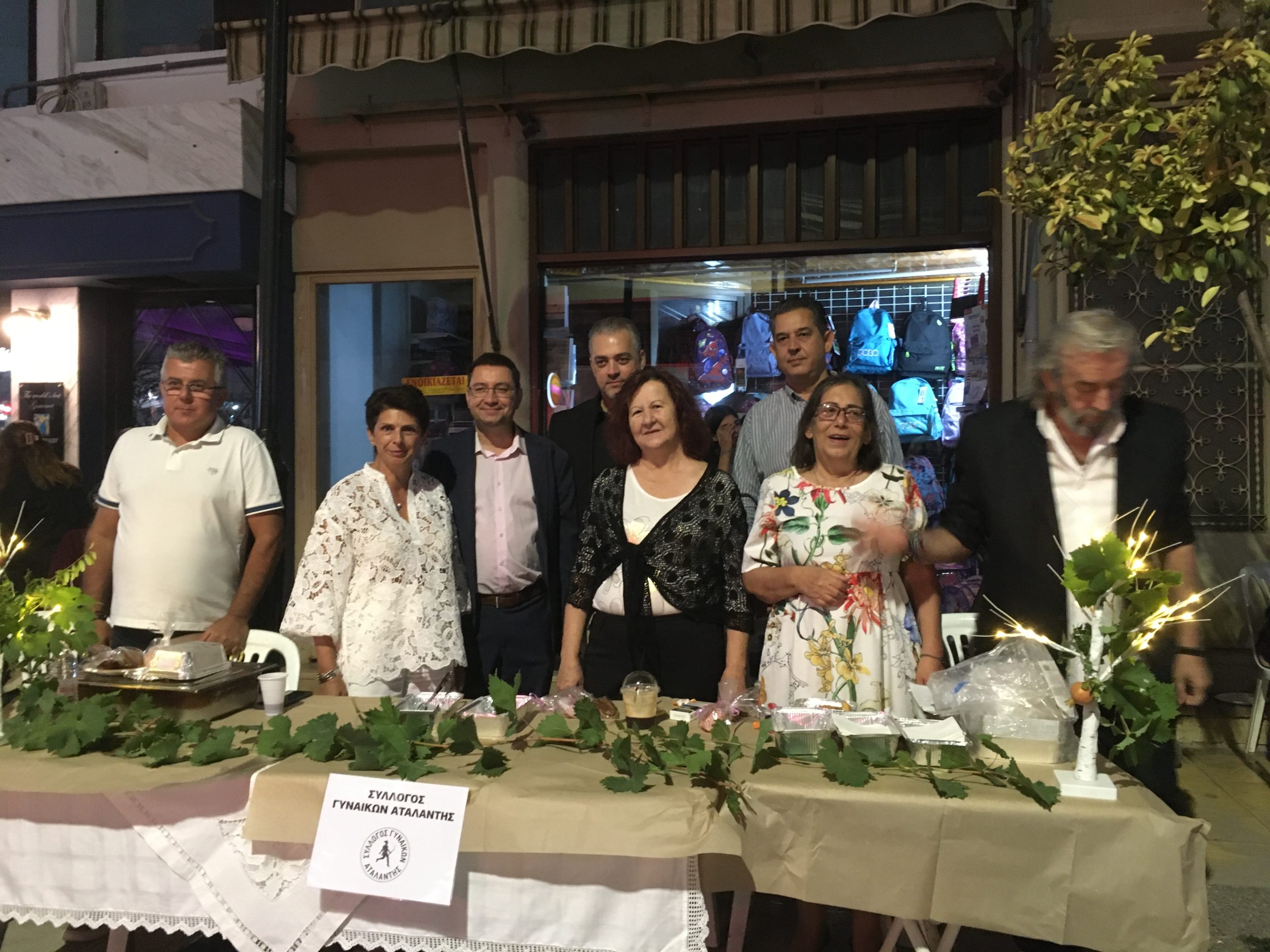 Στη συνέχεια στην κεντρική πλατεία Αταλάντης στις 20:30 τα οινοποιεία Κτήμα Παπουτσή, Κελάρι Μπούτσικα, Κτήμα Χατζημιχάλη, Kainas Winery, Karadimos Family, Karadimos Winery πρόσφεραν άφθονο κρασί στους κατοίκους και επισκέπτες που συγκεντρώθηκαν στην Πλατεία Αταλάντης και στην κεντρική οδό της πόλης για να γευτούν τα υπέροχα κρασιά της Αταλάντης και η Αφεντούλα Ραζέλη με την ορχήστρα της ταξίδεψε μουσικά τους παρευρισκόμενους.