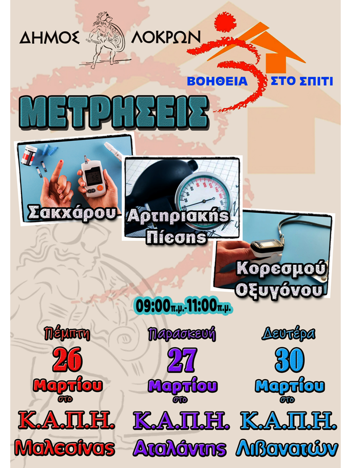 Μετρήσεις ζωτικών σημείων στα ΚΑΠΗ Δήμου Λοκρών