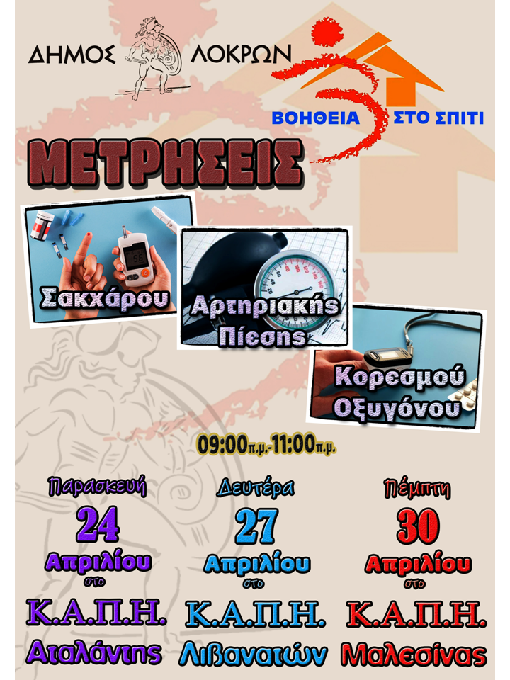 Υποβλήθηκε Δε, 20/04/2026 - 01:06 Μετρήσεις ζωτικών σημείων στα ΚΑΠΗ Δήμου Λοκρών