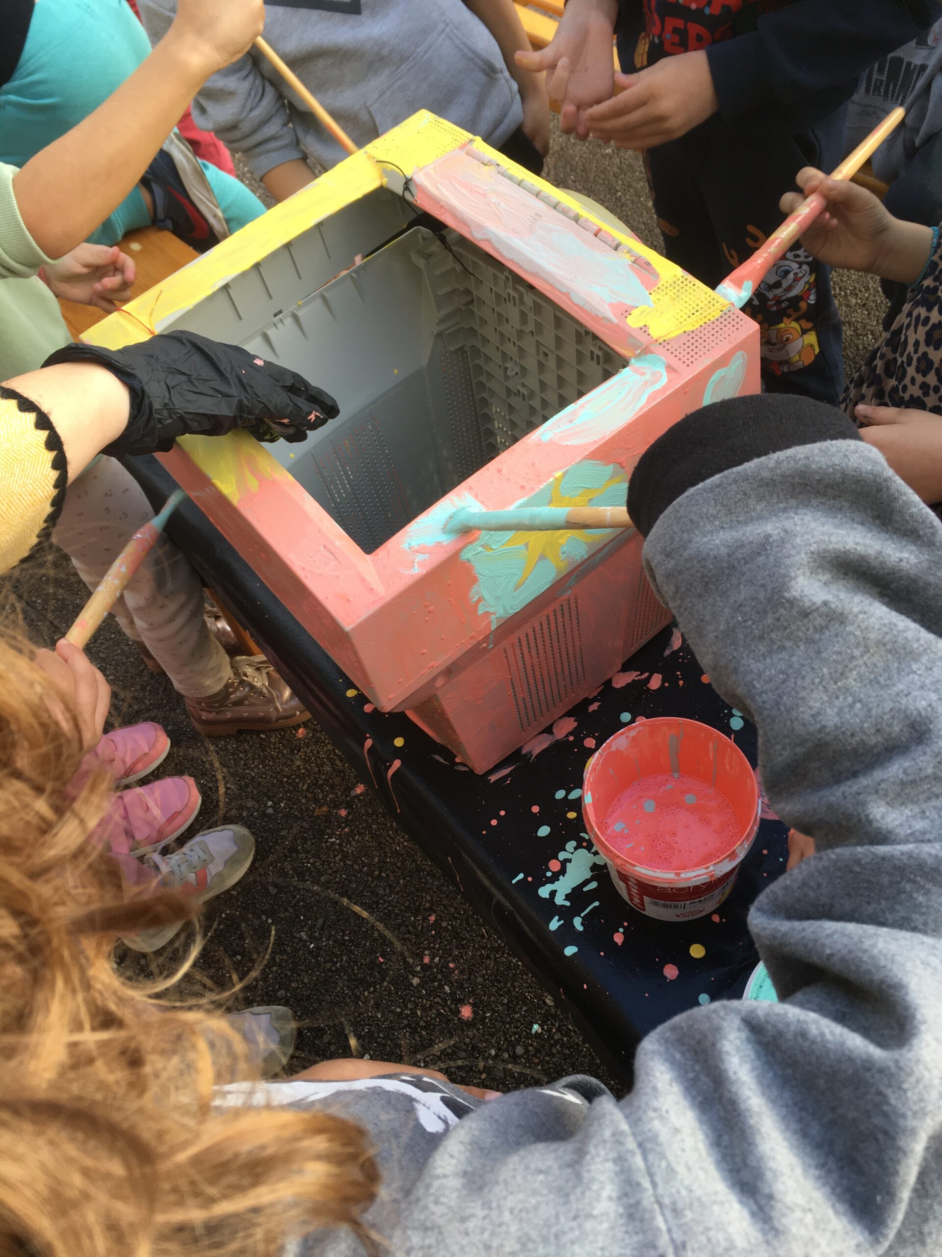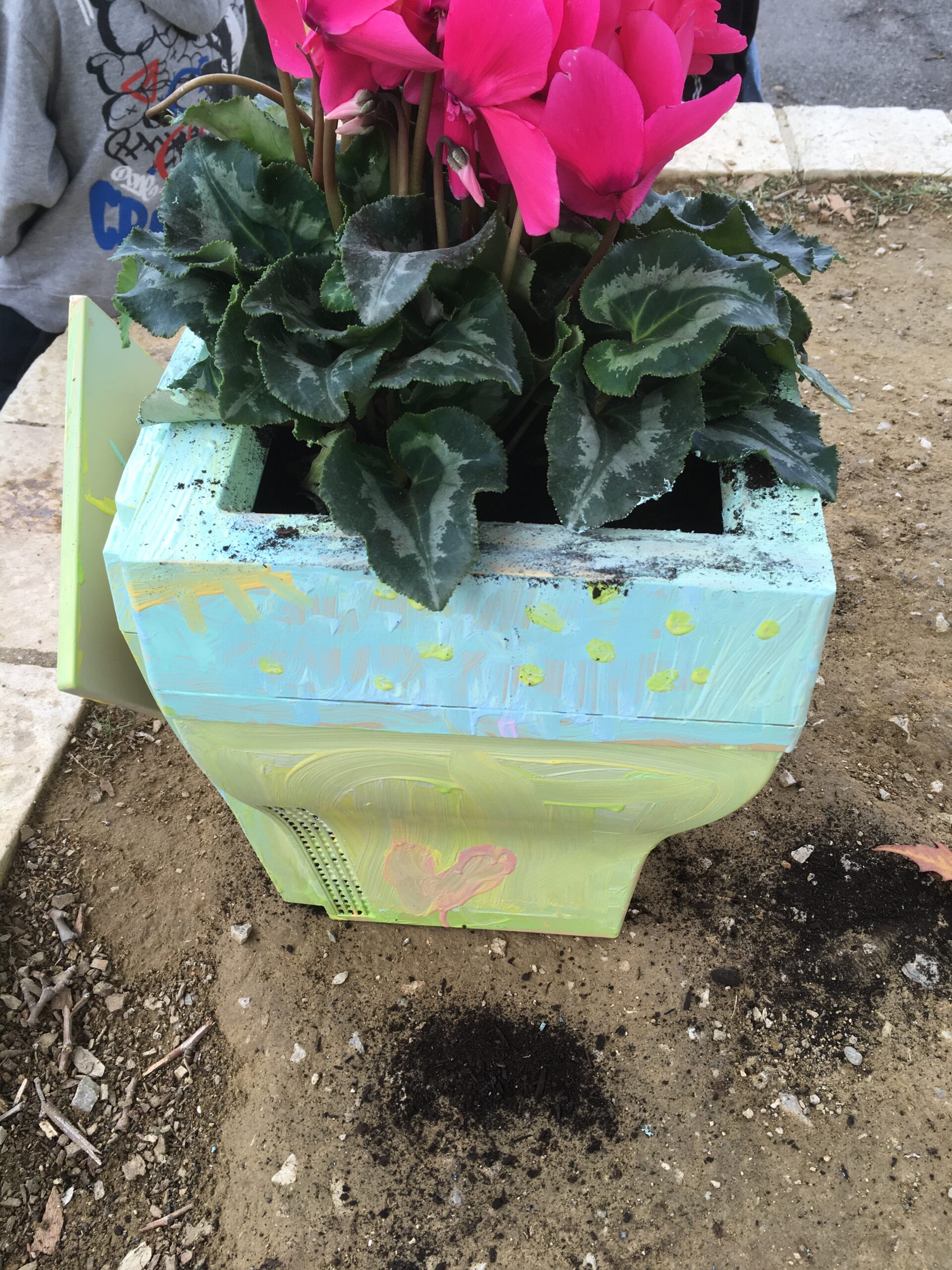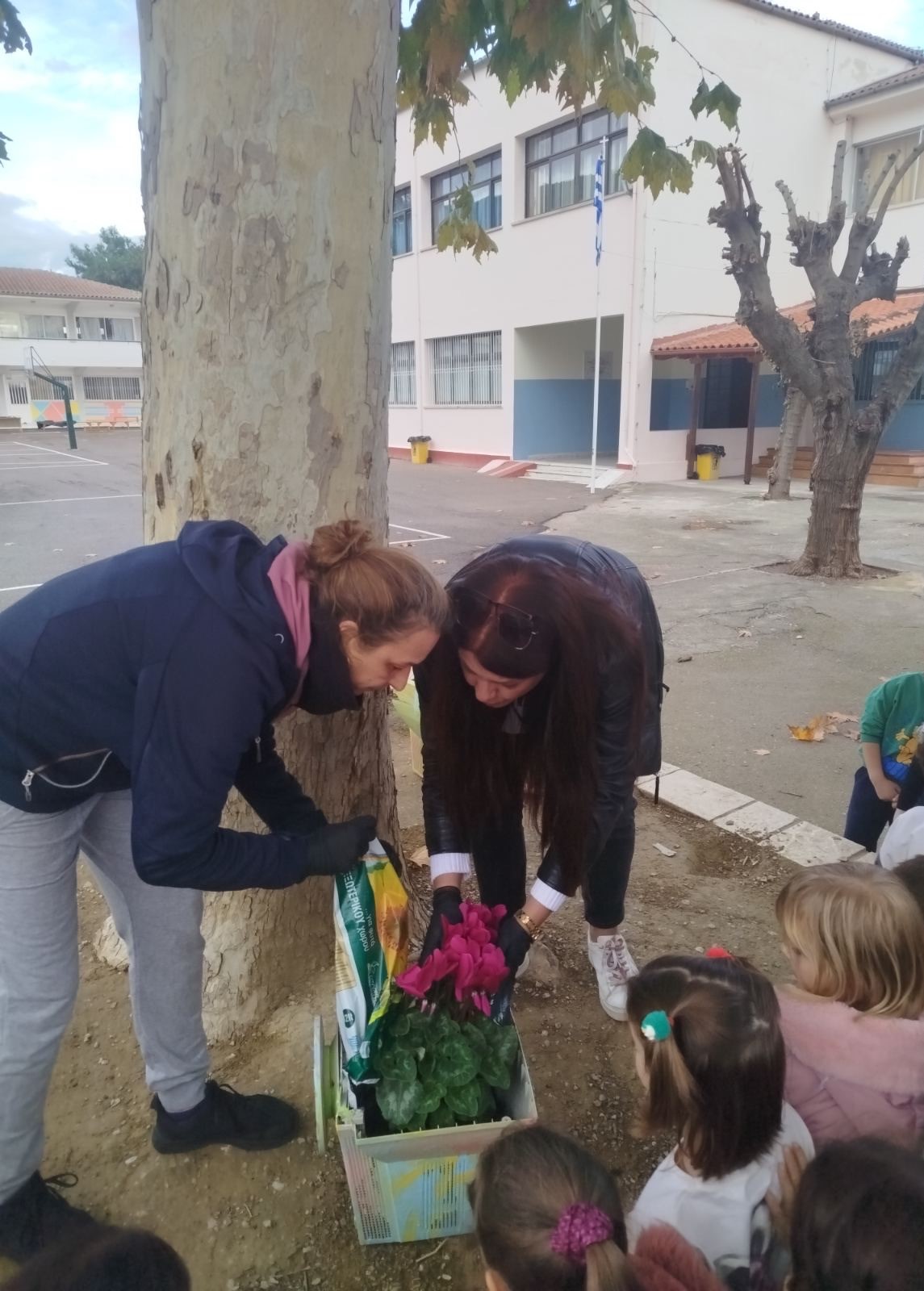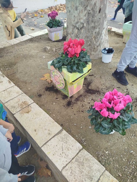 Οι μαθητές της Α’ και Β’ τάξης σε συνεργασία με την Αντιδήμαρχο Παιδείας κ. Γιούλη Καζάνα, την Αντιδήμαρχο Πρασίνου κ. Σπυριδούλα Δημάκη, την Διευθύντρια του 1ου Δημοτικού Σχολείο Αταλάντης κ. Βασιλική Φλώρου και τις εκπαιδευτικούς των τάξεων ζωγράφισαν τις οθόνες από παλαιούς υπολογιστές και τις μετέτρεψαν σε γλάστρες με κυκλάμινα. Με αυτό τον τρόπο δημιούργησαν μια μικρή αλλά σημαντική γωνία πράσινου στον προαύλιο χώρο του σχολείου τους.