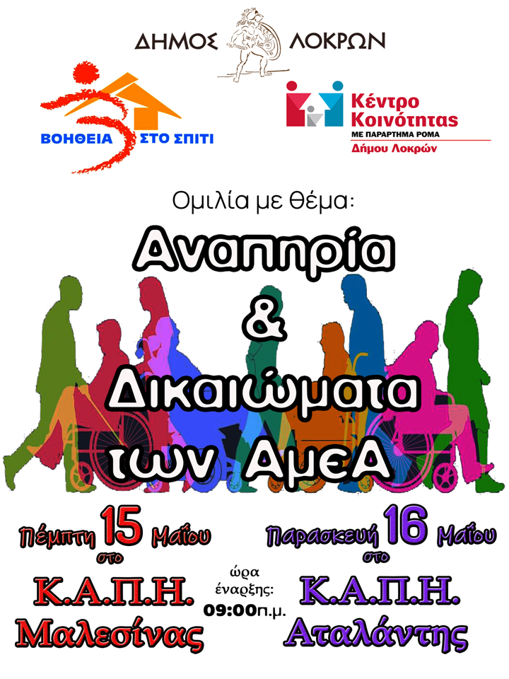 Υποβλήθηκε Τρ, 13/05/2025 - 12:07 Ομιλίες με θέμα την Αναπηρία και τα Δικαιώματα των ΑμεΑ στα ΚΑΠΗ του Δήμου Λοκρών