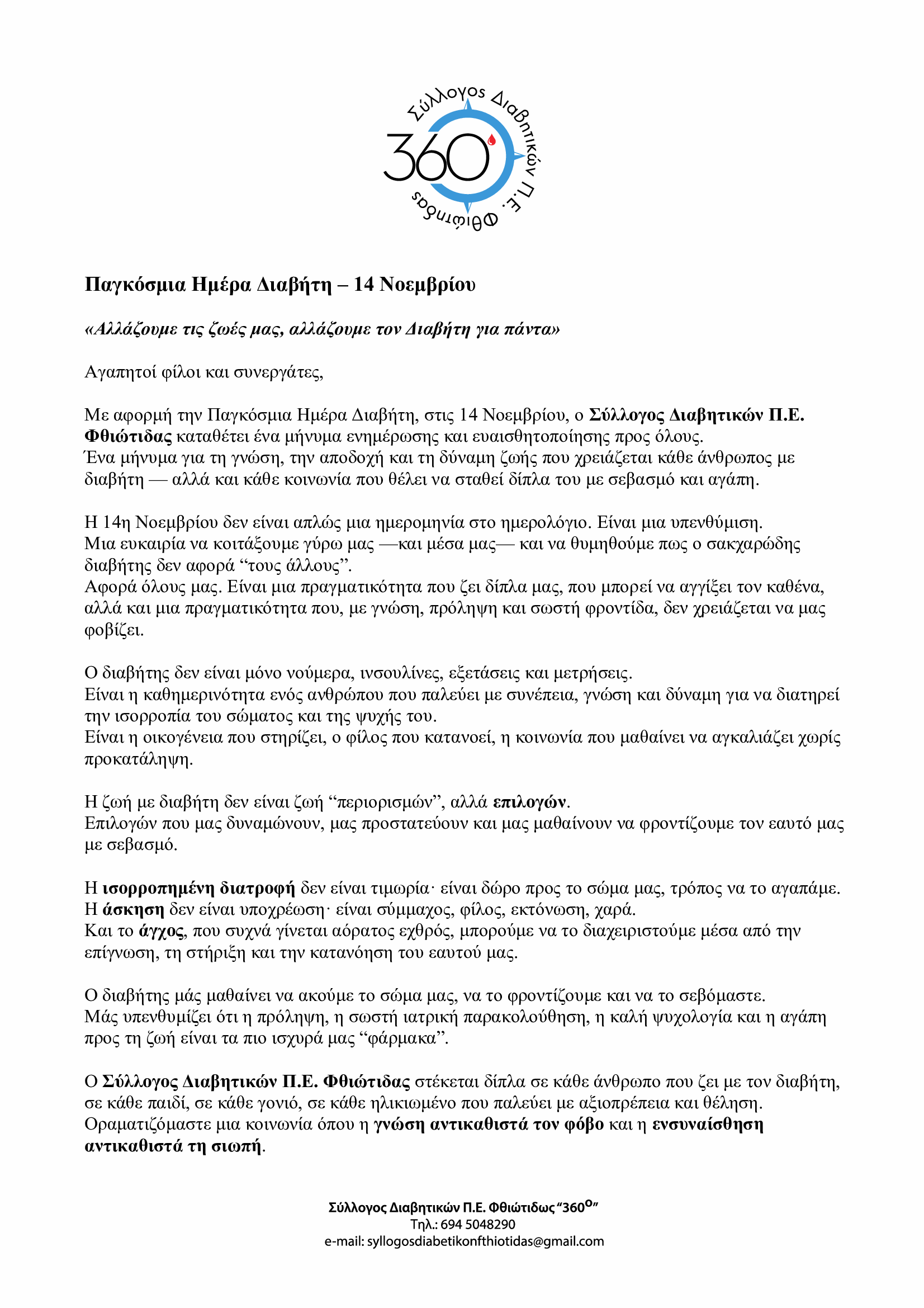 Παγκόσμια ημέρα Σακχαρώδη Διαβήτη