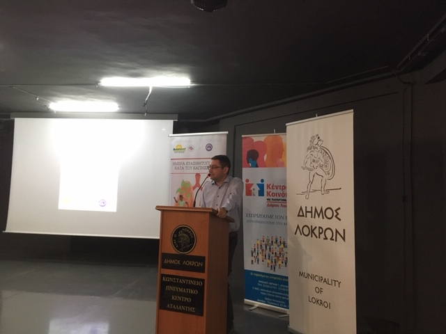 Ομιλητής της εκδήλωσης ήταν ο κ. Αγγελής Δημήτριος, Πνευμονολόγος – Φυματιολόγος στην Αταλάντη με τίτλο "Ζωή σαν τριαντάφυλλο δίχως κάπνισμα". Ο ιατρός αναφέρθηκε στις συνέπειες και την αντιμετώπιση του καπνίσματος, και προσέφεραν σημαντικές και πολύτιμες πληροφορίες στο κοινό, το οποίο είχε την ευκαιρία να θέσει ερωτήματα στο τέλος των παρουσιάσεων και ευχαρίστησε το ΕΔΔΥΠΠΥ λέγοντας: «Ευχαριστώ πολύ για την δυνατότητα που μου δόθηκε να ενημερώσω τους συμπολίτες μου στην Λοκρίδα σχετικά με το κάπνισμα. Εύχομαι να συνεχίσετε την αξιέπαινη προσπάθεια σας ειδικά στη Ελληνική επαρχία».
