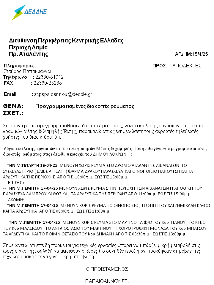 Αρχεία ΠΡΟΓΡΑΜΜΑΤΙΣΜΕΝΕΣ-ΔΙΑΚΟΠΕΣ-ΡΕΥΜΑΤΟΣ-16-04-25-ΚΑΙ-17-04-25.docx